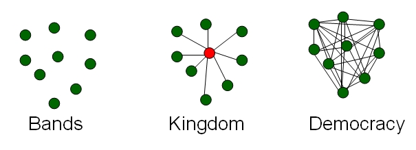 Le élite delle società più complesse saranno tutt’altro che democratiche nel loro governo della massa ma per gli stessi principi della democrazia dei piccoli gruppi, è facile siano democratiche tra loro, al loro interno. Altresì, questi “capi” singolari o plurali è probabile fossero revocabili e la loro posizione non era ereditaria. In un secondo tempo le élite diventarono chiuse e il potere condensandosi in sempre meno mani, venne trasmesso tra pari (magari con qualche lotta di successione o addirittura favorendo la successione con l’omicidio) o addirittura a discendenti all’interno della stessa famiglia. Già a questo primo stadio di complessità che corrisponde a gruppi umani già di una certa consistenza e già da tempo stanziali, notiamo due fatti che riconducono al nostro assioma iniziale.