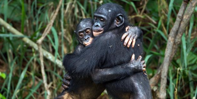 L’interpretazione di de Waal che comincia ad essere parte di un più vasto consenso pluridisciplinare, parte non dagli scimpanzé ma dai bonobo. I bonobo sono delle scimmie antropomorfe che differiscono per meno dell’1% del DNA dagli scimpanzé e che hanno con questi, caratteri comuni che entrambi non hanno con gli umani e con gli umani, caratteri comuni che entrambi non hanno con gli scimpanzé. La faccenda filogenetica quindi, i