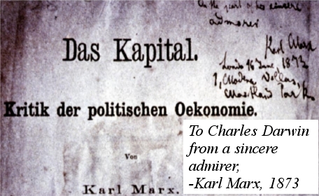 Marx, con o senza Engels, produsse il pieno della sua opera tra il 1844 ed il 1859, poi continuò la ricerca sulle sole forme economiche che culminarono nel Capitale del 1867. Siamo dunque sovrapposti all’Origine ed Engels comunicò a Marx il suo entusiasmo per la lettura di Darwin e successivamente, di nuovo Engels, affiancò i due, Marx e Darwin, come scopritori di leggi naturali (l’uno) ed umane (l’altro)[3]. L’implicito era che esiste una