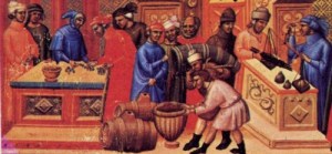nelle città (mercato). Questo aumento della produzione chiama ulteriori investimenti per dissodamento, deforestazione, bonifica, irrigazione che vogliono dire manodopera e strumenti prodotti dall’artigianato. Si pongono problemi di rete viaria per collegare città con città e città con campagne e si pone il problema della moneta, del suo valore e della sua circolazione. A sua volta, la moneta è chiamata anche dalla sincrona espansione dell’attività mercantile ed artigiana ed in mancanza di una risposta puntuale ed adeguata, nascono i primi strumenti finanziari e creditizi. La crescita del Duecento è l’innesco di un lungo processo che porterà alla modernità. Giovanni Arrighi, nel suo monumentale “Il lungo XX secolo” pone qui l’invenzione dell’alta finanza[1] dei Bardi e dei Peruzzi, poi dei Medici, in quella Firenze che accoppiò il commercio religioso per conto di Roma, con quello della lana che importava dai Paesi Bassi e dalla Francia e poi da tutte le nuove altre fonti, finanziando anche le produzioni del Nord Europa e collocando i prodotti nel Levante in cambio di spezie, tinture e prodotti esotici che rigirava alla nuova classe affluente europea. A seguire, la prima forma di capitalismo finanziario (che secondo Braudel è l’unico, vero, capitalismo in quanto tale), sviluppata da Genova, quello più spiccatamente commerciale di Venezia e la prima industria del milanese e del Nord Italia.