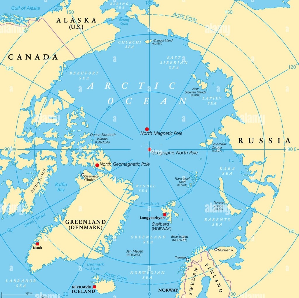 Ricordo che gli US sono considerati una nazione polare solo per una parte (nord) dell’Alaska, a suo tempo terra russa comprata dagli americani (1867). ma in caso di tensioni o addirittura conflitto, lo stretto di Bering, in condominio coi russi, sarebbe assai poco agevole. A sua volta, al sottosuolo del Polo Nord sono attribuite enormi riserve di petrolio, gas, palladio, nichel, fosfato, bauxite, terre rare e chi più ne ha più ne metta.